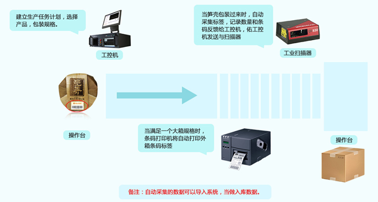 2、同時產(chǎn)生兩級或三級編碼(中包裝和大包裝相關(guān)的對應碼),在產(chǎn)品裝箱或入庫時貼對應的防竄貨標簽條碼;
